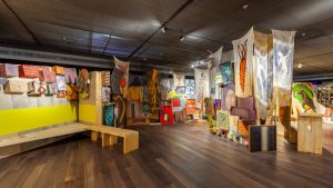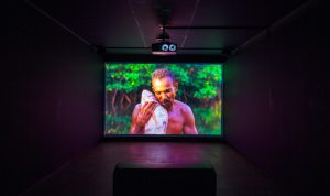 Flera installationer befinner sig i process. Ylva Snöfrid målar i FANTASIA, a Reflection of the Painter’s Studio in the Shadow World… I konstnärsduon Günes & Güçlü Öztekins installation är rummen redo för samvaro, komplett med trumset och mixerbord i ena hörnet.