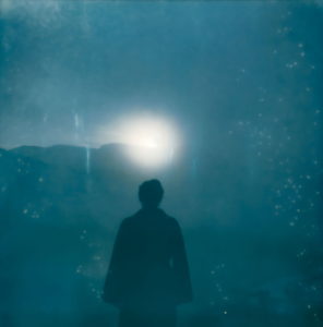 Det mest iögonfallande med Floating är ändå den genomgående monokroma färgskala som präglar fotoserien. Den osar av intensiva, sammetslena nyanser av cyanblått som här och där avbryts av större och mindre vitgula partier, i ett kontrastrikt spel mellan ljus och mörker. Något som är ett resultat av de ofta utgångna polaroidfilmer Kruse Jensen använder, och den efterföljande kemiska processen som hon inte kan kontrollera.
