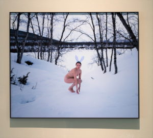 Marja Helander, fotograf, videokonstnär och filmskapare baserad i Helsingfors, syns på flera ställen i utställningen med både film och foto. I Helanders verk härskar kontrasterna – mellan humor och allvar, gruvdrift och fjällvärld, natur och maskin. Humorn är slagkraftig, mörkret becksvart och vyerna visuellt magnifika. Dubbeltydigheten finns också i Synnøve Persens målningar ”Bleeding sun”, ”Hole in the Ice” och ”Crystal World”. De till synes abstrakta verken visar samtidigt dagsljusets skimmer över isen eller solens fläckar genom trädkronor. Naturens prakt i sitt mest avskalade format.