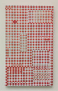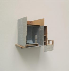 En låda på väggen visar upp sitt innehåll, en planritning av en lägenhet utskuren i vaxduk. En stängd låda öppnas och hela det stora hemmet ryms där. Hon korsar arbetsplats med hem, det dolda med det som är synligt och barnets perspektiv med de storas sammanhang. Färgskalan är den ofta dolda, den man finner om man tar isär de saker som går att hitta i ett hem.