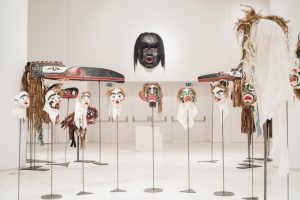 Nästan helt frånvarande är också brett gestaltade installationer av internationella konststjärnor. I och för sig är finns här mycket sevärt, men väldigt lite som omedelbart tar tag och gör en mållös. Här finns desto mer av en intellektuell och politiskt medveten konceptualism, både gammal och samtida, och av olika pedagogiska modeller (inte förvånande med tanke på temat!). Mycket arkivmaterial i form av foton och dokument (fortfarande!), och en stor mängd etnografiskt material (mer överraskande!). Beau Dicks masker och nyskapade rituella objekt från Nord-Amerika ges en central placering och ”naiv folkkonst” från olika delar av världen återkommer på flera platser i utställningen.