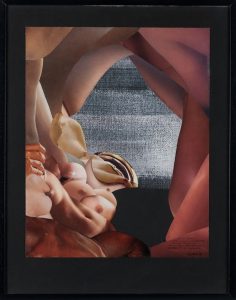På 1970-, 80- och 90-talet gör Åhlberg collage som består av urklipp från kommersiella tidskrifter av dyrare sort. Kvinnokropparna dominerar fortfarande, men formerna blir mjukare och bildspråket mer informellt symboliskt. En omisskännlig sjuttiotalsestetik a la veckotidning kan smyga sig in i bilderna och resultatet blir då tidstypiskt. Solbrända kvinnokroppar läggs samman till bergskedjor och ökenlandskap. ”Skarvarna syns inte” som det brukar heta när man diskuterar collageteknik. Collagen innehåller också texter, såsom: ”Vad händer härnäst? Hela berget spricker av skratt”. Textinslagen ger ytterligare en dimension till verken men framstår ibland som infall.