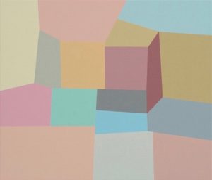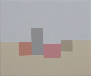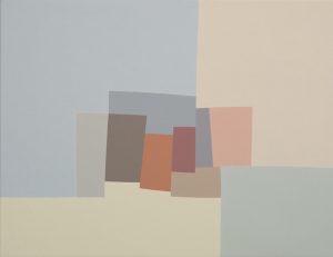 Kontemplativ tystnad, för all del, men även den sovstads-tyst-och-stilla som Ebba Grön sjöng om. Påminner inte färgerna om de som finns på persienner? I Sundkvists skrifter finns spår av taoistiska studier: ”Dao i vår mun är av fadd smak”, citerar han en gång och tolkar: ”Men Dao är verkligheten i sin totalitet. Det är just för att det omfattar allt, rymmer allt existerande som ren möjlighet, som dess smak är fadd.” Medan jag tittar tänker jag på titeln och försöker förstå vad det är som är före blindheten. Formerna bildar ibland volymer, men det är undantag. Men även förutan verkar de ha tyngd. De lutar mot varandra, vilar på varandra. Det kommer inte att hålla länge till, tänker man, den här ordningen. Sen försvinner den. Är det det som åsyftas, det tillfälliga i det synliga, att allt synligt förfaller i något slags blindhet?