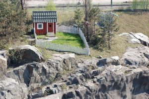 Kommer du ihåg den lilla röda stugan med vita knutar, staket och postlåda på en klippa vid Stockholms norra länk; hur den snabbt förvandlades till ett av de mest omhuldade och välbesökta olagliga gatukonstprojekten? Idag lever verket vidare i en annan form och på helt lagligt vis. En gjuten betongkopia av stugan med tillhörande fotodokumentation köptes in 2016 av Stockholms läns landsting, och finns som platsspecifik konstinstallation på nyligen invigda Nya Karolinska Solna. En utan tvekan betydelsebärande gest. För det markerar ett officiellt erkännande av projektet som legitimt konstnärligt uttryck. Cirkeln är sluten.