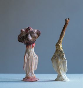 Betraktar man Kerstin Hanssons figurer var och en ser man att deras personliga levnadsöden är gestaltade med en detaljrikedom – och med en underbart hängiven kärlek för det avvikande – som annars riskerar att sjunka in i den brokiga helheten. Utväxter och abnorma formtillskott tillhör snarare vanligheterna än undantagen.