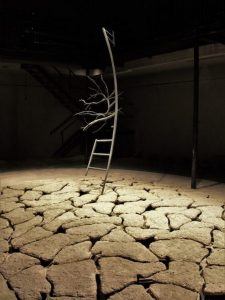 Det nya verket har mycket mindre av konstruktion eller bygge än många av Kleens övriga arbeten. Det utgörs av en oval sandbädd vars mittaxel är en aning förskjuten i förhållande till det avlånga rummet. En stor del av denna oval täcks av en sprucken, lätt välvd skorpa, bestående av 137 oregelbundna betongkokor. Ur denna förtorkade mylla skjuter en stympad, enbent stege snett uppåt i en antydd spiralrörelse. Högre upp är några stegpinnar ersatta med trädgrenar, som om stegens trä plötsligt återfått sin växtkraft och skjutit grenar och skott som sedan förvissnat.