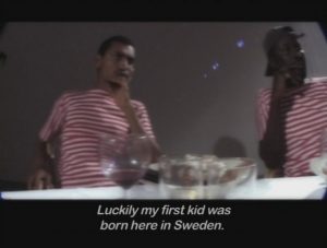 Själva samtalet utvecklar sig till en salig blandning av transkulturella rasistiska och sexistiska föreställningar, fördomar och klichéer. Om den svarta mannens reproduktiva anatomi och brist på all ambition eller allt värde. Om den blonda ”djinni” som, genom skenbart giftermål, är vägen till pengar men är (psykiskt) opålitlig. Det är både dråpligt och smärtsamt sorgset. Att männen är klädda likadant, i sjömanstil med rödrandiga tröjor, understryker det generaliserande, det fördomsfulla hos människan. Cherinets tilltag med klädseln går bortom det rent dramaturgiska i filmen; det materialiserar frågan om perspektiv eller referensram, men det är ingalunda enkelt riktat. White women är, sina 12 år till trots, ett i allra högsta grad aktuellt konstverk ur såväl ett globalt som lokalt perspektiv. Dess narrativ om och kring dikotomin svart/vit avslöjar en pågående politisk, social och ekonomisk verklighet. På ett mer personligt, människonära plan visar filmen upp en obehaglig spegelbild av människan, av oss som individer och folkgrupper i nationalstater. Det är med stor viljeansträngning man orkar stå framför den spegeln.