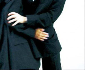 I slutet av 1990-talet arbetade Maria Friberg med verk där kostymmannen eller affärsmannen skärskådades och placerades svävande i simbassänger, sveptes i lakan eller syntes tryggt inkilade bland böckerna i en bokhylla. Att han inte känner sig bekväm i sin roll syns kanske tydligast i ”Confront me back” från 1997 där en ung man sitter väldigt obekvämt mellan sätena i en bil. Den svarta växelspaken trycker mot hans ena knä när han försiktigt och mycket omständligt rör sig.