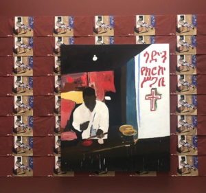 Av konstnären Francis Bacon återfinns en målning i reproduktion på tygkassar från Centre George Pompidou. De är upphängda på väggen och agerar fond till Henry Taylors målning ”Untitled (Ethiopian Pharmacist)” som porträtterar en mansgestalt i en butikslokal. Hur kan man tolka relationen mellan bilden på tygpåsarna och målningen? Vill man poängtera att Bacon karaktäristiska måleri utgör ett fundament, eller att det kommersialiserats och reducerats till intäkter för en stor konstinstitution? Eller är poängen att Henry Taylor som är en känd samtida konstnär kan gå samma väg till mötes? Är frågan om det är bra att reproducera stora målningar på tygpåsar överhuvudtaget?