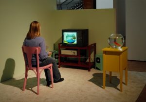 När man stiger ur hissen på sjätte våningen sätter installationen Fin de Siècle II tonen för utställningen. På 207 monitorer presenteras en kavalkad av återanvända bilder och mycket elektronisk musik – från svartvita Hollywood klassiker till ikonen David Bowies distinkta röst. Det rör sig och det låter. Konstverket av Nam June Paik skapades 1989 till en utställning här på museet.