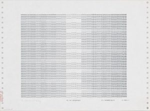 Utställningens är indelad i två delar. Rule, Instruction, Algorithm, presenterar verk som använt regler för att skapa bilder, med fokus på konceptuell konst. Ett samarbete mellan Lucinda Childs, Philip Glass och Sol LeWitt presenteras i videon Dance (1979). I en vitrin ligger noteringarna som utgör grunden för de rörelser som kropparna i videon utför. I strax intill presenteras dator-genererade teckningar på paper. Bläcket ser ut att ha bleknat med åren. De är ur en artist´s book av Frederick Hammersley. 1968 fick han tillgång till en kraftfull IBM dator med vars hjälp han programmerade bokstäver och siffror. Varje sida är signerad och de kodade mönstren grafiskt tilltalande.