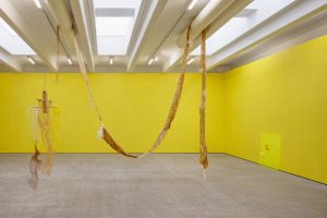 Åtminstone väcker det en reaktion att greppa och vårda det vackra och meningsfulla. De andra filmerna visas på mindre monitorer i galleriets korridorer. Den ena visar hur en lönnplanta berövas sina löv i förtid på en skogskyrkogård (Untitled Action, 2015, th) och den andra (Jaanika, 2007) utspelar sig i en bostad fylld av äckel och smuts där det hörs hur en kvinna bekänner sig inför en församling.