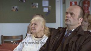 Jaan Toomik är i grunden målare och tankarna går till de kroppscentrerade målningar han ställde ut i Tallinn för två år sedan vid namn Smells Like Old Men’s Spirit, speciellt när jag betraktar den åldrande mannen i kortfilmen Armulaud (Nattvarden, 2007). ”Today is a special day”, säger prästen i den lama gudstjänsten i ett intimt estnisk kyrkorum, där en deprimerad man tar del av nattvarden. Mannen förflyttar sig sedan till sitt enkla hem tillsammans med en kvinna som verkar vara prostituerad. Hon smörjer in hans ovårdade, torra fötter med vit lotion.