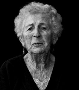 Outsägligt vackert och drabbande är det allvarliga och vördnadsbjudande porträttet av överlevaren Tauba Katzenstein. Kamerans strama saklighet förmedlar svagt ett återhållet vibrato av känslor. Men bilden öppnar sig för mig och fram träder Munchs svartvita litografi Skriet. Formen lägger sig som ett raster bakom fotot och fördjupar upplevelsen.
