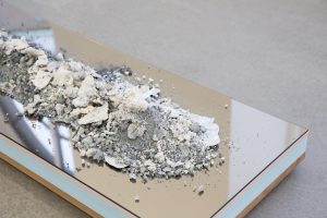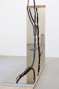 I det första utställningsrummet presenteras metaller och mineraler på baser täckta av spegelyta. Basernas olika lager påminner om verken ”Foundations” och ”Vivisections” i Hanna Ljunghs första utställning på galleriet. Även de verken syftade till genomskärningar av jordlager. De hämtar konnotationer från genomskärningar som tidsdokument, som indikationer på tid som passerat och i förlängningen också på den påverkan vi människor haft på jordskorpan. Begreppet antropocen må vara trendigt men det är inte desto mindre relevant. Så även i denna utställning.