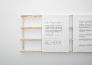 I Ulrika Gomms Bygga nation och kroppar är det återigen kroppar som blir främmandegjorda. Eller inkluderade. Beroende på tidsperioder och politiska strömningar. I en omfattande väggtext har hon samlat utdrag som på olika vis berör människor och människors kroppar ur regeringsförklaringar från 1914 till 2014. I de olika fraserna syns mönster, såsom liberalismens frammarsch under 1900-talet eller den fluktuerande synen på migranter och invandrares rättigheter och möjligheter. Det blir en smula övertydligt då och då men ansatsen är ändå i slutändan vettig. Verket belyser bland annat hur språkbruk är kopplat till maktförhållanden och sätter fingret på den frustration som kan uppstå när ord och välmenande fraseringar inte stämmer överens med faktiska politiska utövningar.