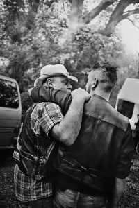 Personerna poserar också i hög grad, njuter av exponeringen. Ändå är de inte utlämnade, exploaterade; tvärtom finns här ett samförstånd mellan den avbildade och fotografen. Även om det nog ibland kan vara outtalat. Petersen följer dem i sorg och glädje, i vardag och till fest. Oftast handlar det om det senare. Hur har han kommit in i alla sammanhang, tänker jag? Där ligger nog mer än halva jobbet.
