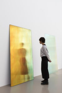Trots en sensuellt klingande titel börjar Hot Pink Turquoise i ett slags färglöst andante. En samling transparenta objekt – tomma vitriner, vätskefyllda burkar, konvexa linser och prismor – försvinner nästan ur synfältet från sin placering mot ett fönsterparti vid ingången till utställningen. Det är lätt att missa Prototype, 1991, Vitrine, 1989, Untitled (Prism), 2013, Fantaisie transparente, 2016, och den risken är nog inräknad. Men när man väl upptäcker objekten blir besökaren bjuden på en rad optiska upplevelser, lika elementära som barnsligt lustfyllda. Det mest intressanta med denna gest är att den i all sitt anspråkslösa, genomskinliga utseende ringar in kärnan i den belgiska konstnären Ann Veronica Janssens konstnärskap – perceptionens begränsningar och möjligheter.