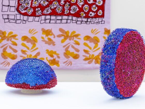 Amerikanska Monica Valentine skapar märkvärdiga skulpturer av tusentals små pärlor och paljetter som hon omsorgsfullt syr fast stygn för stygn. På Malmö konsthall väntar hennes ”Eliza”, en provdocka som Valentine transformerat till en glittrande, mystisk varelse. Varje millimeter är täckt, där kroppen formar ett landskap av mönster, texturer och färg. Monica Valentine, som är blind, arbetar gärna med lysande kulörer…