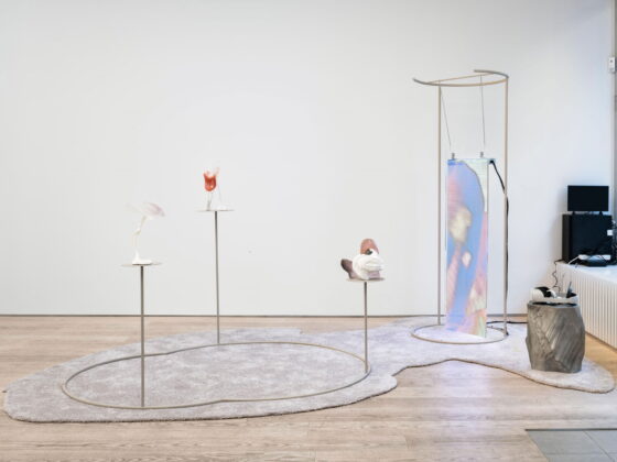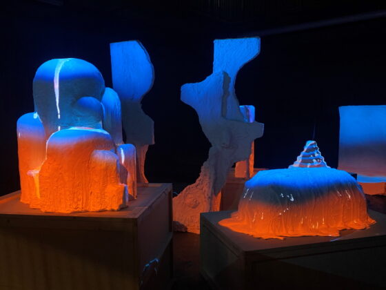 ”Somewhere over the rainbow” möter mig när jag kliver in genom Konstakademiens glasdörrar. Ljudet kommer från TM:s utplacerade valbås, ”Det brinner”, och tillsammans med Malin Norbergs magiskt snidade trädörr och Sara Ekholm Erikssons metamorfosiska sten vid ingången, tycks jag träda in genom ett slags drömportal. In till ”Vargtimmen”, som är titeln för Kungliga Konsthögskolans Masterutställning. En mytisk och rituell plats…
