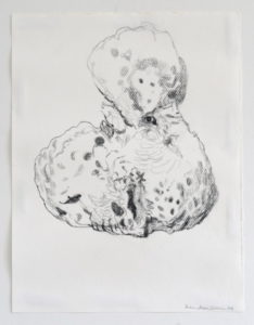 De flesta av hennes skulpturer sitter ned och ofta på knä. Eftersom jag är helt ensam i salen kan jag slå mig ned alldeles intill skulpturen Collector on the beach, vilket jag inte skulle våga om någon var där. Jag viker ihop mig mellan samlaren på stranden och hennes fynd och blir generad. Jag vill kliva in i berättelsen men upplever att jag går över en gräns som upprättats i själva kompositionen. Skulpturens existentiella oåtkomlighet är det inte meningen att jag ska nå in i. Samlaren står på ett knä och har fått fatt i ett köttigt moln och en kvadrat som skulle kunna vara en sockel för en annan, mindre skulptur.