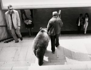 Ett fönstergalleri har ju inte så lite karaktären av ett skyltfönster som vänder sig till de förbipasserande oavsett om de vill eller inte. Och vid flera tillfällen under utställningsperioden hade någon velat visa sitt missnöje med vad hen såg och försökt skydda oss förbipasserande för innehållet genom att klistra upp papper på fönstret. Det som då skulle censureras var rörliga bilder av björnar som dansade eller på annat sätt uppträdde inför en publik. Bibloms arbete och utställningens namn var Mechkar vilket betyder björndomptör. Bakgrunden till Bibloms mångåriga arbete med att titta på, undersöka och umgås med dansande björnar och deras ”familjer” är ett stycke europeisk samtidshistoria. Huvudpersonerna, människor och björnar, har eller hade oftast en hemvist i Östeuropa medan de flesta djurrättsorganisationer har en mer västlig geografisk hemvist.