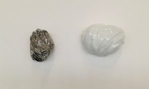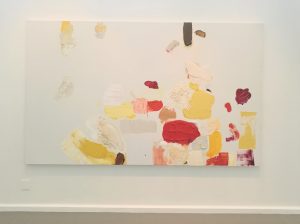 Burling behärskar stora format, och kompletterar dessa med mindre dukar koncentrerade på en specifik händelse ur de större. Som förtätade frågeställningar tolkar jag också de ovala objekt som finns runt om i utställningen. Handformade klimpar, rispade eller med veckad yta, och liksom indränkta med färg. Vita eller i glänsande silver, guldfärgade eller i matt rosa. Det är lockande och logiskt, men har inte samma dragningskraft som målningarna.