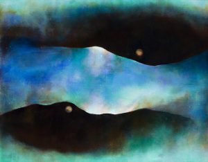 Av Isak Hall visas en del större målningar. Mystiska landskap möjligen från andra planeter i gult, turkost och starka mörka glansiga partier. I ett antal mindre verk, tuschlaveringar och krita på papper, koncentreras uttrycket. De är också fint placerade vid fönstren. Konstnären bor i Stockholm och har studerat på Kungliga Konsthögskolan. I huvudstaden har Candyland och Galleri Tegen 2 tidigare presenterat hans konst.