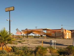 Eric N. Macks installation av tyger, sponsrade av Missoni, draperade kring en övergiven bensinstation är böljande och mäktig. Men kommer att förändras radikalt i det hårda ökenklimatet. Premisser konstnären givetvis är medveten om. Jag funderar på diskrepansen mellan dokumentation och verklighet när jag besöker platsen, samtidigt som en fotograf från Vanity Fair. Vi ser en fantastisk installation, men kommer besökarna efter oss att känna sig besvikna? Får man ens bli missnöjd när tidens tand och naturens krafter är inbyggda i verket?