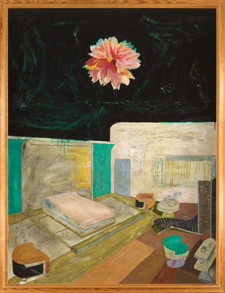 Även det sterila kulissrummet i Henrik Samuelssons panoramalika målning ”Refugium IV” har något av Bengtssons definitiva övergivenhet. Fast klädd i en betydligt mer vårdad skrud. Samuelssons bild är insisterande och samtidigt undanglidande, med ett bakomliggande ljus som kunde finnas i någon outnyttjad tv-studio. Och likt i Bengtssons målningar känns miljön helt och hållet konstgjord.