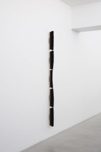 På väg in till andra rummet hänger Something Passed, fem borstar med svart hästhår, monterade lodrätt på väggen. Jag låter borstarna försiktigt stryka emot sidan av kroppen när jag går förbi. “We are living doors”, sa Marina Abramović i ett performance 1977 där hon och Ulay lät 350 människor stryka sig emot dem genom en dörröppning. Verket inbjöd till integration, att känna, bli förvånad och öppna upp. Jag skulle vilja påstå att Something passed har samma verkningsgrad om än med större integritet. Det passar mig att jag här slipper ha främmande människor nära inpå min kropp för att behöva öppna upp.