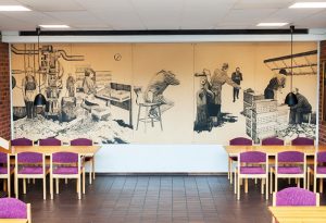 Ovan nämna Haga är en. Konsthallen vid Götaplatsen, en annan. Den tematiska utgångspunkten är en diskussion om rummets neutralitet, här då den vita kuben. Frågeställningen blir om något rum kan vara i avsaknad av historia, om det kan vara neutralt? Där stannar jag särskilt till vid Michelle Dizons fotografier av uppslag ur National Geographic från 1930-talet i verket ”White Gaze” (2018). Med suverän enkelhet gestaltas hur motiven skapar och cementerar en maktfördelning i tidskriftens rum. Här finns också den stora, drastiskt detaljerade ”Väggtäckning” av Knud Stampe (1936-1996). Bläckteckningen porträtterar arbetsplatsen med flera dåvarande anställda och hänger sedan 1971 i verkstadsklubbens matsal på SKF i Göteborg, där man – som jag antar – sitter och äter och umgås med den i bakgrunden, år efter år. Kanske ser man den knappast längre. Nu, i konsthallens vita kub, blir den betraktad av en annan publik. I biennalens kontext får den en annan mening och funktion, som samhällskritiskt, arbetshistoriskt dokument. Jag tänker också på hur det är nu, när den är borta från matsalen på SKF fram till 11 november – saknar man den? Och ser man den på nytt, med nya ögon, när den lämnas tillbaka?