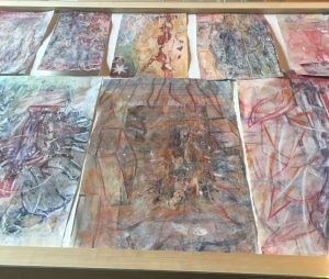 Röda Stens Konsthall är ett sorgebarn, en svår utställningshall. ”Katedralen” där är en dominerande, postindustriell och dunkel sal som alltid tävlar med konsten istället för att tydliggöra den. Så är fallet nu också. Men här finns flera intressanta verk som tack vare form och material lyckas gå i klinch med byggnaden. Åsa Elzéns ”Avskrift av en träda” (2019), en kopia i återvunna material av en av modernistiska Fogelstadgruppens 20-talsmattor, självlysande och enorm, och Kent Lindfors många intensiva, sköra målningar/collage ”Vatten, Skrot och Eld” (2019) där han med något liknande manisk frenesi bearbetat martyren Giordano Brunos öde.
