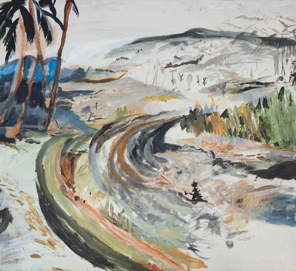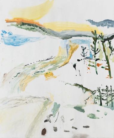 Är detta fantasilandskap, allihop? Utställningstexten talar om X:ets skogar som Billgrens favoritbilder, och jag tänker på vidderna i norra Sverige när jag ser målningarna. Men kopplar inte fjäll och snö samman med Helene Billgren. Fast vad vet jag? Och vad gör det att några av träden ser ut som palmer? Det är väl i första hand inte naturen som är på tapeten här – snarare minnena, drömmarna och önskningarna om måleriet.