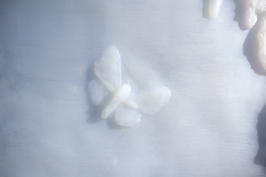 Med hjälp av trä, silikon och vax låter Lundqvist medeltidens tanke om det fysiska livets förgänglighet och själens odödlighet möta nutidsmänniskans längtan efter att kunna blicka genom lagren av tid och finna en viloplats i drömmen. I verkens ytor syns de svaga avtrycken av blomrankor, ljus, fjärilar och meandrande textslingor som alla berättar om livets skörhet eller om stunden när det, med Cecilia Hanssons ord, ”skimrar av något som är sant”.
