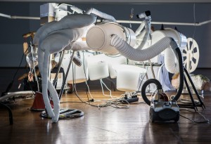 Något har hänt, något har förändrats i huvudet på John Bock. Den tyska konstnären är internationellt känt för sina utsvävande och farsaktiga performances, där en till synes rotvälska, ömsom deklamerad, talad eller skriken rakt ut till publiken, har blivit lika mycket en del av hans signum. Hans konstnärliga genealogi kan spåras till konströrelser som Dadaism, Surrealism och Fluxus, och konstnärer som Kurt Schwitters och Paul McCarthy. Men Bocks konstnärskap är ett universum i egen rätt. Ett egensinnigt formspråk genom vilket konstnären tänjer och expanderar bortom konstens konceptuella gränser.