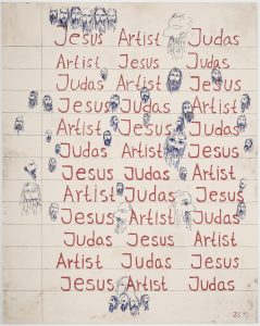 Jörgen Svensson använder sig av en injektionsspruta för att ciselera fram spröda linjer och kraftfulla budskap. Sprutor och kanyler som konstnärligt redskap? Tankar på missbruk och dess offer infinner sig omedelbart. Den ovanliga målartekniken är också en minnesruna som efter förlorade kamrater. Samhällsengagemanget som underton ekar högt i allt som Jörgen Svensson gör. Oljemåleriet, som för honom behäftas med borgerliga klichéer, förkastade han redan under studietiden. Hans finstilta formspråk har snarare sina visuella rötter i allmogen och folkkonst. Stilen anspelar tydligt på hemslöjd, konsthantverk och textilkonst.
