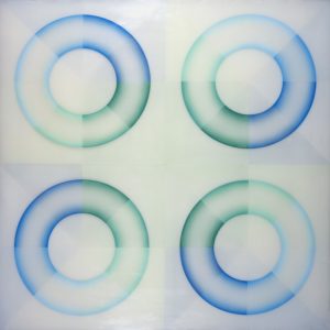Pasadena Lifesavers serien består av stora kvadratiska spraymålningar på akryl. Fyra framstående runda former på kvadrater. En intrikat undersökning av färg och form, fullständigt platt. Studerar man det närmare framstår den spännande ytan lika hård som mjuk.