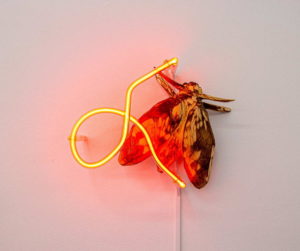 Den enda väggskulpturen utan neon kallas Engine och dess abstrakta form föreslår en annan typ av rörelse, ett slags rotation. Väggreliefernas sprittningar och gester bryter fram som infall i materialet, upplysta av neonets solnedgångsljus. Sunburst, som marionettskulpturen kallas, kastar impulser tillbaka på betraktaren genom sin uppbyggnad och placering i rummet. I solflödet blir en kropps möjlighet att röra sig till en fråga full av konsekvenser.