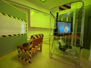 En trappa ned och längst bort i utställningen med de 15 avgångseleverna från masterprogrammet i konst på Konstfack 2020, ligger ett mörkt insprängt förråd med plåtskåp, avspärrningsband och flera transportvagnar i rostfritt stål med blinkande skärmar. Det är ett slags retroestetik över verket An Investigation into Sleep Deprivation som Elise Léonin presenterar. Ett virrvarr av hjärnvågor, binaurala rytmer och isokroniska toner, som jag inte vet vad det betyder, men som Léonin skriver om i utställningstexten, om hur hon undersökt möjligheten att ”hacka” sig in i sin hjärna. Jag får upplevelsen av ett bottenlöst, närmast matrix-febrigt, flöde av sömnbrist. Som runt omkring på golvet ligger nedmonterat i datordelar, likt hjärnor vars innehåll har hällts ut och sorterats om på småtimmarna. Installationen är trevande och har ingen vidare finish, men just därför får verket en nerv som känns pågående. Trovärdig. Ser fram emot att se hur den känsligheten kommer att utvecklas.