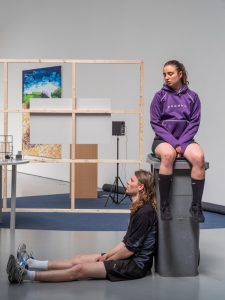 Eleverna har två år till på sig att förfina, fundera och arbeta ut. Det är värt att poängtera – det här är arbeten skapade mitt i utbildningen. Utställningen ska inte underskattas, men bör ses som en övning, också i presentationen och samarbetet; mellan elever, institution, utställningsgrupp, tekniker och curatorsgrupp.