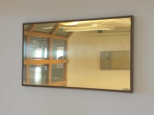 En effektiv kontrast finns också i Sara Nielsen Bondes kryss av spända trådar som löper från fyra uppställda målardukar (allra överst). Trådarna korsas i luften utan att nudda varandra i ett noggrant utfört arrangemang där delarna tycks balansera varandra. Och i ett angränsande rum finns projektstudenten Gethin Wyn Jones lika minimalistiska installation med spegelblanka bildytor och en video som långsamt panorerar nära inpå en pistol (ovan tv). Några exempel på konstnärer som verkligen behärskar sitt material och laddar det med både skönhet och obehag.