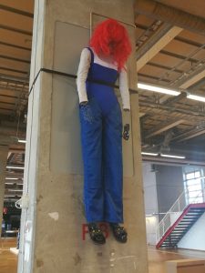 Miljön på Tomteboda har stimulerat flera av eleverna att visa verk eller installationer i riktigt stort format där måleri, skulptur, teckning, video och objekt av olika slag ingår. Utställningen är också ovanligt välhängd, där konsten verkligen tillåts breda ut sig och det finns tillräckligt med utrymme för varje verk. Helhetsintrycket pendlar mellan stökigt och städat, mellan konst som bryter av eller smälter in i den ruffa omgivningen. Jag blir upplivad av att gå omkring i detta konstlandskap fullt av spirande talanger.