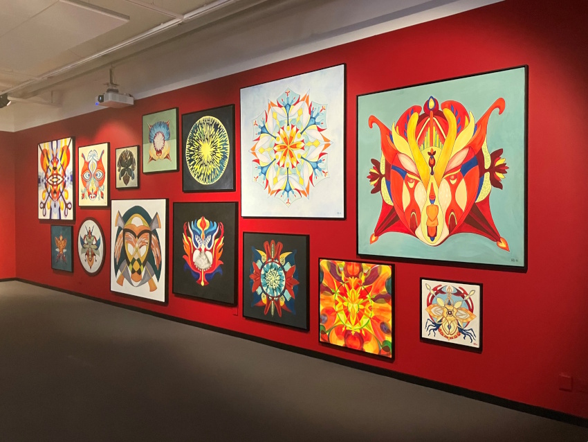 De färgstarka och till övervägande delen mandalalikande målningarna på väggen mitt emot, med titlar som ”Samlad tid”, ”Mitt ansikte är bortrest” och ”En lönnmördad stjärna”, pekar ut en möjlig riktning. Samtidigt som de stora kroppsdelarna i tusch i ”Vanföreställningar” och de urklippta formerna som hänger från taket likt köttslamsor i ”Furst Mysjkin” poängterar det kroppsliga på ett nästan makabert påtagligt sätt. Överhuvudtaget är ett besvärjande drag starkt närvarande hos Lotta Melin.