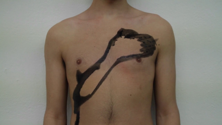 För trots det lättsamma anslaget anar jag ett tvång, något olustigt. Tydligast syns det i den video som visas i det främre biblioteket, ”My Dear Dad Said/Min käre far sa”. En naken överkropp täcks långsamt av svart färg, genom att den ena och därefter den andra handen målas av i relief på den egna kroppen. Allteftersom fylls de tomma ytorna ut med mer och mer färg, medan frasen ”My Dear Dad Said” om och om igen upprepas. Som ett straff som aldrig kan upphöra, eftersom förseelsen är en del av den straffades själva varande.