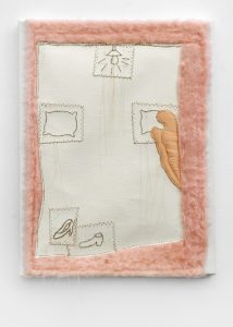 På Bohman-Knäpper hänger ett stort antal små ”målningar” från det senaste året. Collageverk snarare, även om underlaget alltid är målarduk. Som en markering av verkens ursprung och hemvist. Även om de grälla pastellfärgerna som Ekman brukar använda lyser med sin frånvaro. Förutom köttfärgen då. Bilderna här präglas istället av tomhet, av målardukens vita gräng och maskinstygnens linjer, och här och där av Fontana-snitt i duken. Öppningar där Ekman i ett tidigt verk stuckit ut en nästipp och kallat för självporträtt.