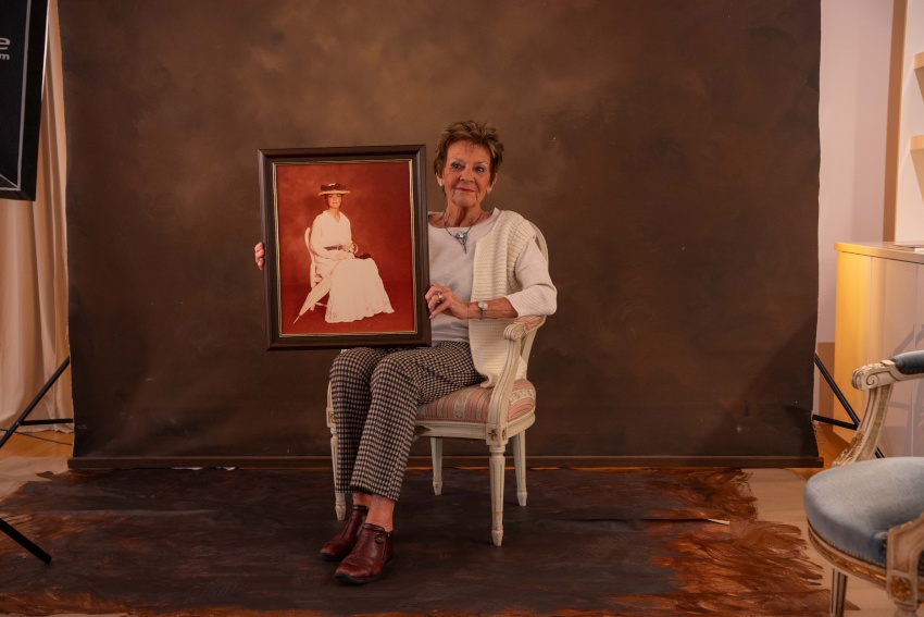 Vid närmre betraktande av utställningens olika delar framträder ett förhöjt fokus på det som bildar bakgrunden till porträtten. Fotofonden. Alltså det som lite ofokuserat existerar bakom den porträtterade. En sådan förefaller vara i bruk och hänger fritt i rummet med en uppställd fotobelysning riktad emot sig. Den är mörkbrun till tonen med ett lite ljusare parti i centrum och skulle ha fungerat väl för en Rembrandtmålning. Samma fond förekommer också i en video.