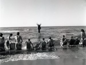 Men Didi-Hubermans urval inkluderar även bl.a. fotografen Lisette Models galet gapande sångerska från 40-talets New Yord och polacken Tadeusz Kantors strandperformance ”Panorama – Happening vid havet” (1967, th), vilket är mer överraskande och visar fram en mer anarkistisk sida. Här finns också Joan Mirós abstrakta blå och röda pennstreck (av en torterad fånge som flyr) och en målning med Henri Michaux snabba penseldrag. Som om det är överskridandet i sig Didi-Huberman vill illustrera – på ett så vittförgrenat sätt som det bara är möjligt. Och varför inte?