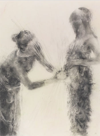 Det personliga är politiskt. I Wiboms utställning växer en lågmäld feministiskprotest fram bland självporträttoch kannor som kan tömmas och fyllas igen. Jag får en glimt av konstnärskapet och dess villkor, där de snäva utsnitten ur interiörer rymmer mycket mer än det som möter ögat. I Perssons rum flyter teckningar och film ihop medan tematikens poler möts: prickar och klotter bildar mönster i minnesbilder som hör hemma i en inre värld och på samma gång i världen utanför. Konsten kan uttrycka det gemensamma i en delad verklighet, men med omvärldsläget oroligt vibrerande i telefonen blir frågan man måste ställa sig: vad händer när vi inte längre delar verklighet med varandra?