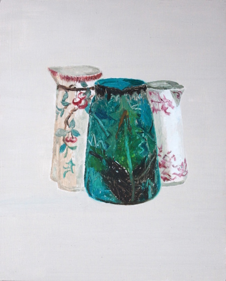Kannorna ställs också ut som skulptur, byggda och formade i glaserat stengods. De är vackert utformade med motiv som mossa, bark och grenar. Objektens gäckande skala saboterar deras funktion (fyllda skulle de bli sinnessjukt tunga), vilket gör dem till utmärkta konstverk. Tillbringarna återfinns i åtminstone två av hennes interiörer men inte i något av porträtten. Att måla av andra och sig själv måste vara lite som att låta sig fyllas för att sedan tömmas.